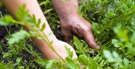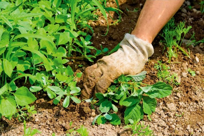 Es muy útil regar unas horas antes de deshierbar para arrancar cómodamente la maleza desde la raíz.