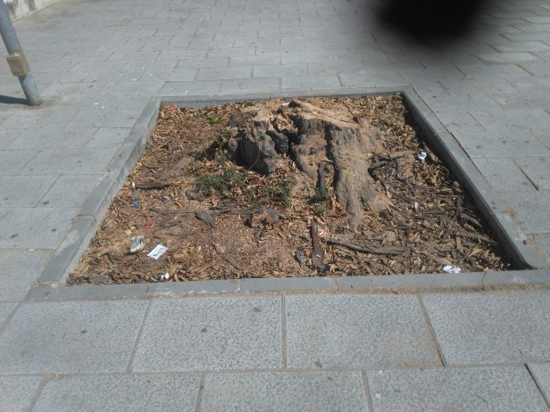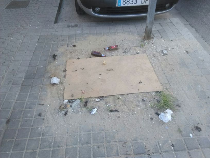 Suciedad en los alcorques sin plantar, donde se acumulan toda clase de desperdicios.