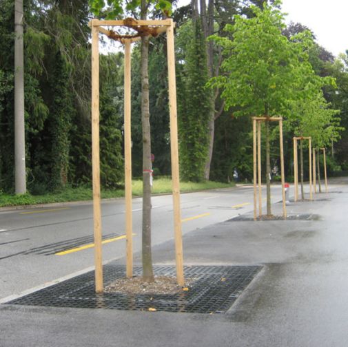 Un cierto número de dispositivos, comprendiendo diversas modalidades de mantenimiento a largo plazo, son posibles a base de cubre alcorques de fundición, acero o metálicos galvanizados, envolturas drenantes garantizadas o suelos estabilizados a partir de gravas naturales de tipo silíceo.