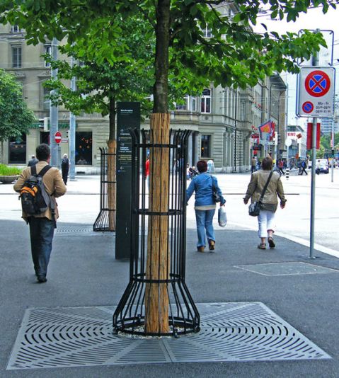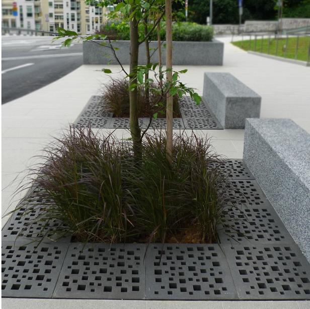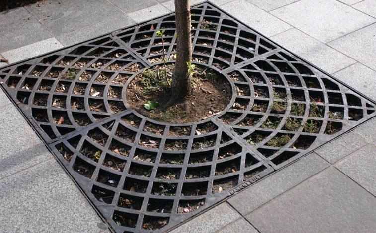 – Elemento de cubrición enrasado con el pavimento circundante, cubrealcorque. Para un mejor aprovechamiento del espacio.