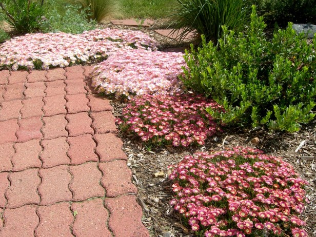 A menudo, menos agua de consumo, materiales de paisaje como las cubiertas vegetales o mulch pueden ser utilizados en lugar del césped.