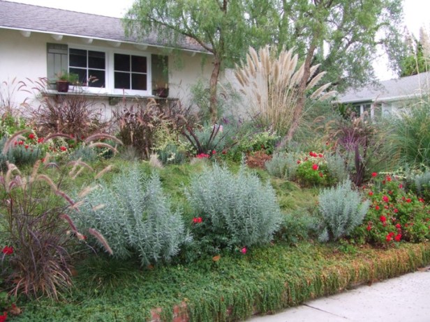 El uso eficiente de agua la planta no significa necesariamente un jardín monótono gris, de plantas con una gran cantidad de espinas de cactus.