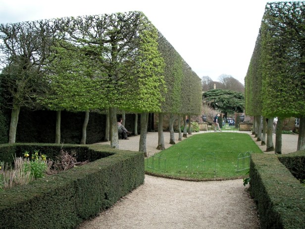 Árboles arquitecturizados formaron los límites alrededor del jardín y se elaboran parterres de estilo libre reemplazándolos por jardines nudo del estilo Tudor
