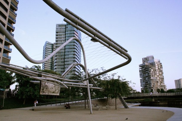 Parc Diagonal Mar un ícono urbano contemporáneo de inspiración Gaudiniana, así describían el Parque yo no se que tiene que ver Gaudí con este parque, solo con mucha inspiración podemos compararlo.