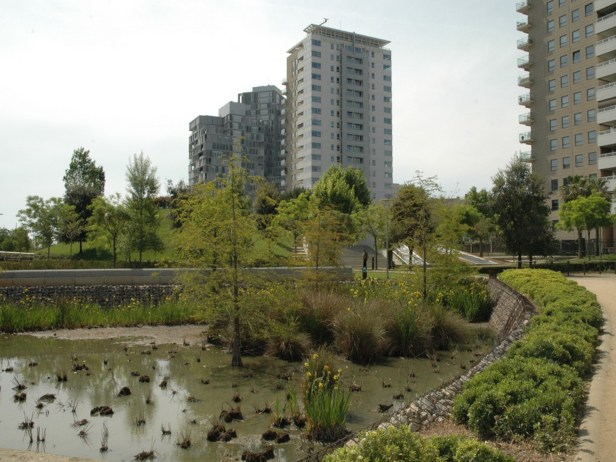 La instalación de una zona húmeda en el Parque Diagonal Mar, potencia la atracción de fauna y crea zonas microclimáticas favorables al crecimiento de las plantas.