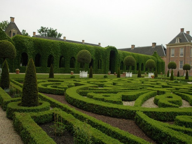 Los tilos neerlandeses fueron recortados de tal manera que sus ramas se extendieran en forma de abanico, formando una pared verde.