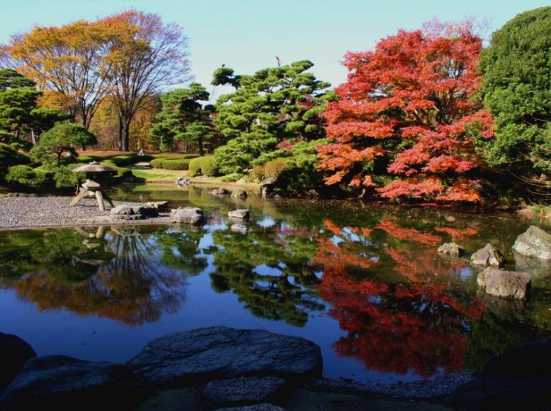 El Palacio Imperial Jardines del Este son una parte de la zona del palacio interior y están abiertos al público. Ellos son el antiguo emplazamiento de Edo círculos más íntimos del castillo de defensa, el honmaru (“círculo principal») y ninomaru (“círculo secundario»). Ninguno de los edificios principales sigue existiendo hoy en día, pero todavía existen los fosos, muros, puertas de entrada y varias casetas de vigilancia.