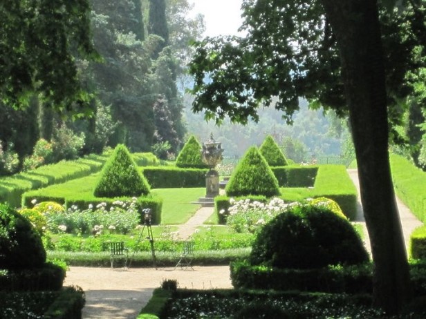 En macetas de terracota lucen las elegantes hojas de salón (Aspidistra elatior) y los geranios (Pelargonium sp.), al tiempo que las glicinias (Wisteria sinensis) y los rosales de Banksia (Rosa banksiae) cubren las pérgolas. En diferentes lugares de los jardines encontramos plantas aromáticas, como la lavanda (Lavandula angustifolia), el romero (Rosmarinus officinalis) y otras especies tapizantes como la hiedra (Hedera helix).