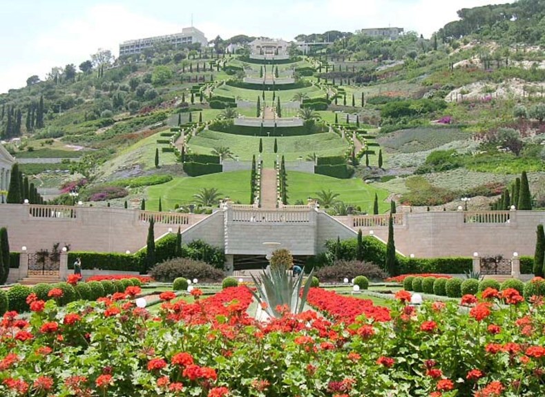 Los Jardines Bahá’í en Haifa comprenden una escalera con diecinueve terrazas que se extienden por todo el camino hasta la ladera norte del monte Carmelo.