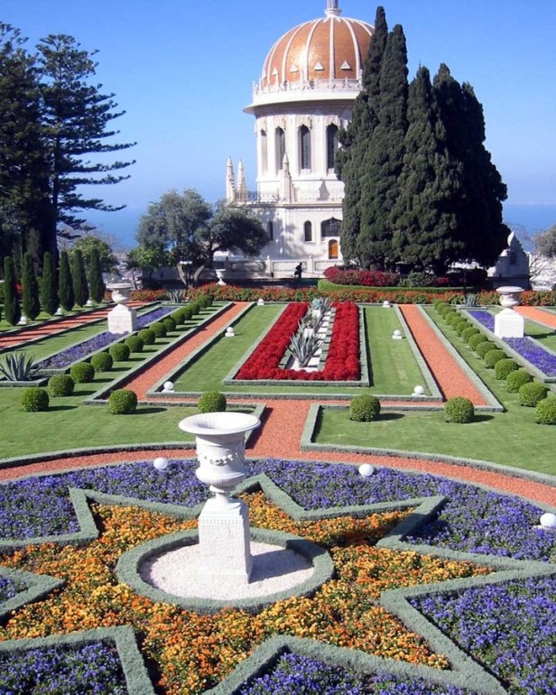 Los exuberantes jardines de Bahai en Haifa, designados sitios del patrimonio mundial de la UNESCO como lugares sagrados y lugares de peregrinación para los seguidores de la Fe bahá’í. Tienen en la capilla de cúpula dorada del Báb, el punto focal de los jardines Haifa, que se extienden por la ladera norte del Monte Carmelo con vistas a la bahía de Haifa. Un verdadero espectáculo de jardines bien mantenidos.