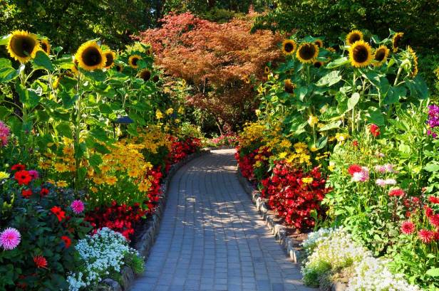 Butchart Gardens en verano.-Girasoles Butchart Gardens .-Jardín privado