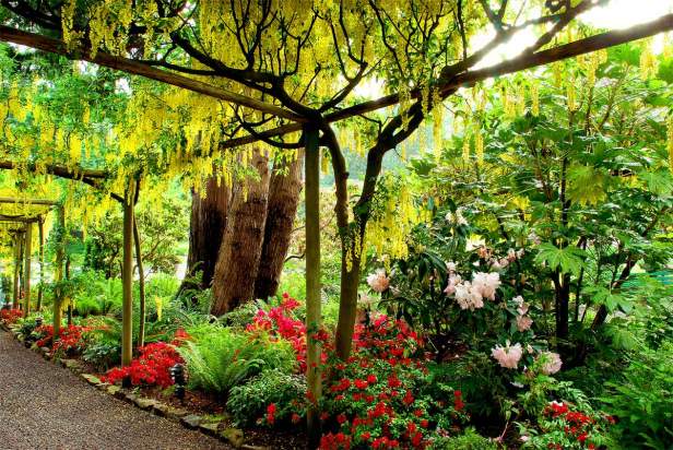 Butchart Gardens.-Tunel de Laburnum anagyroides Butchart Gardens.Ross Fountain.-