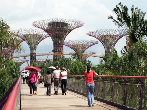En contraste con el entorno urbano denso de rascacielos y edificios de gran altura en Singapur, Jardines de la Bahía es parte de la estrategia general del gobierno para transformar a Singapur en la “ciudad en un jardín.»
