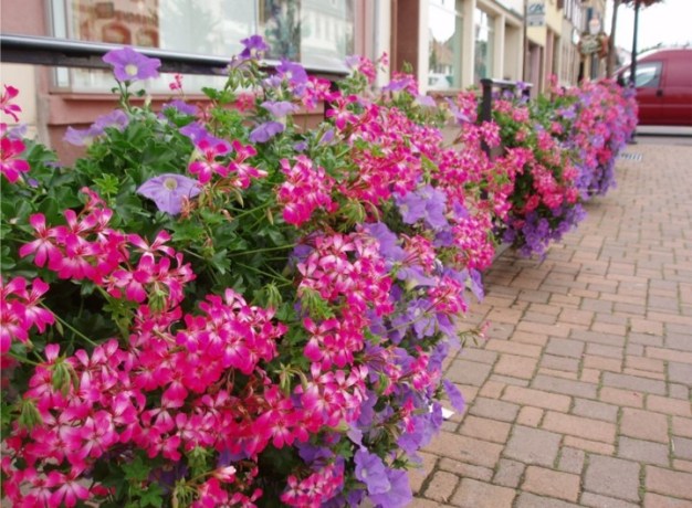 Villes et villages fleuris.-Ciudades y Pueblos en Flor.-Arriate en acera Arriates en la coronación de un muro