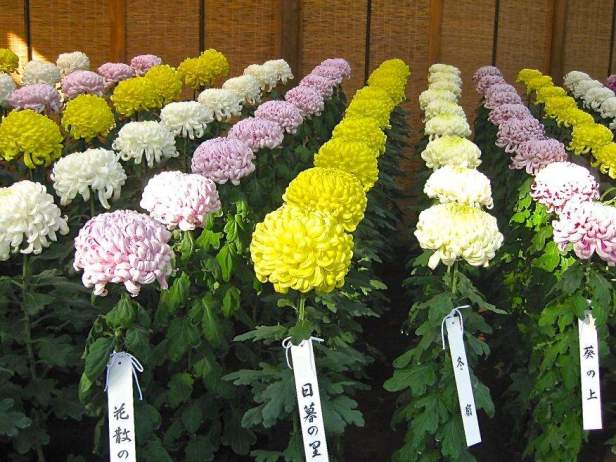 Alrededor del siglo 8 dC, el crisantemo apareció en Japón. Así que se tomaron fueron los japoneses con esta flor los que adoptaron una sola flor de crisantemo como la cresta y el sello oficial del emperador. El crisantemo en la cresta es una variedad de 16 florete llamado “Ichimonjiginu.” Sellos de la familia de prominentes familias japonesas también contienen algún tipo de crisantemo llamado Kikumon – “Kiku” significa el crisantemo y “Mon” significa cresta. En Japón, la Orden Imperial del crisantemo es la más alta orden de caballería. Japón también tiene un día nacional del crisantemo, que se llama el Festival de la felicidad.