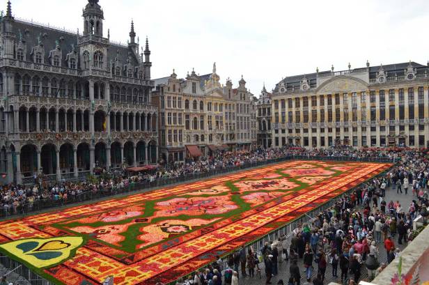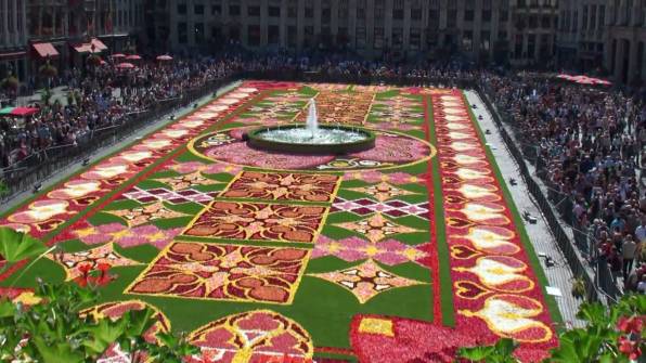 Cada 2 años el Grand-Place en Bruselas está cubierto con una alfombra de flores de begonias. La alfombra de 77 mx 24 m está compuesta por alrededor de 120 voluntarios, con casi un millón de begonias.