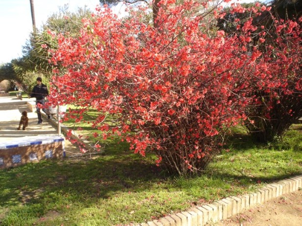 Sevilla.-Reales Alcazares.—Jardines del Marques de Vega Inclan.- Sevilla.-Reales Alcazares.-Prunus persica Albo Plena.-Melocotoneros de flor