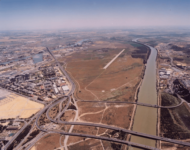 Sevilla.-Darsena del rio Guadalquivir desde el Puente del Alamillo