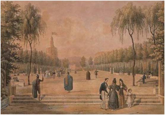 Pablo de Olavide forma un paseo en las afueras de la Puerta de Triana en 1792, desde el Triunfo de la Trinidad hasta la Torre del Oro, y otro desde San Telmo hasta la Fuente del Abanico, en las orillas del río frente al populoso barrio de Triana.