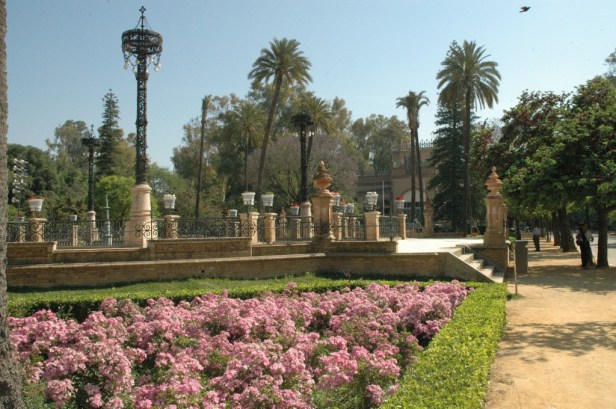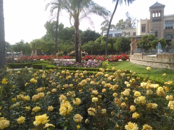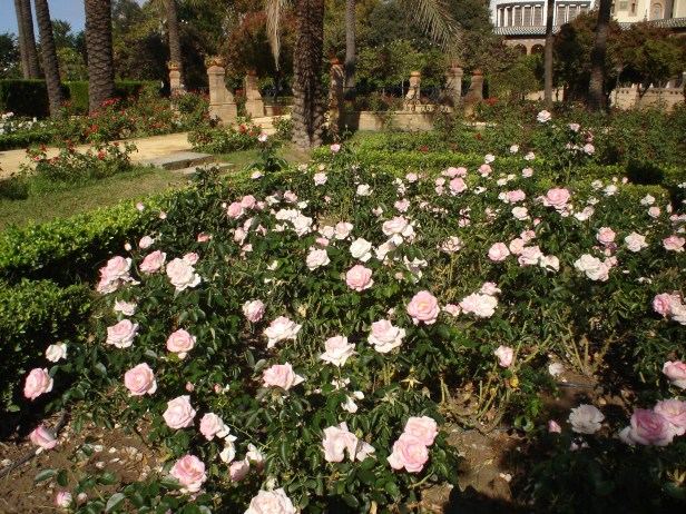En Sevilla, al igual que en todo el mundo, la rosa ha sido cultivada, iniciándose con las especies botánicas de los rosales antiguos: rosales gallicas, centifolias, damascenas_.etc., _que han decorado los jardines antiguos; pero ha sido a finales del siglo X V 111 cuando han aparecido nuestros primeros jardines públicos donde se han iniciado su plantación, adornando los troncos de las palmeras con rosales trepadores de abundante floración en jardines de nueva plantación: Jardines de Las Delicias Jardines de Cristina (año 1830).