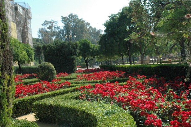 La frondosidad del Parque de María Luisa, en muchos sectores del mismo originada por el crecimiento de los arboles era imposible su plantación.