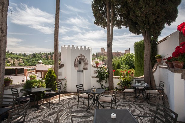 Desde sus terrazas, podemos disfrutar de una vista única, al pie como está de la Alhambra, enfrente justo del Albaicín, y dominando desde ellas el Sacromonte, y la abadía del mismo nombre.