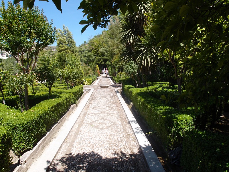 El jardín se organiza en diversos niveles y se ha ambientado con pequeños detalles modernos de buen gusto y tradición entre los que destaca un mirhab con leyenda que recuerda al ilustre visitante que lo concibió: el príncipe del Yemen.