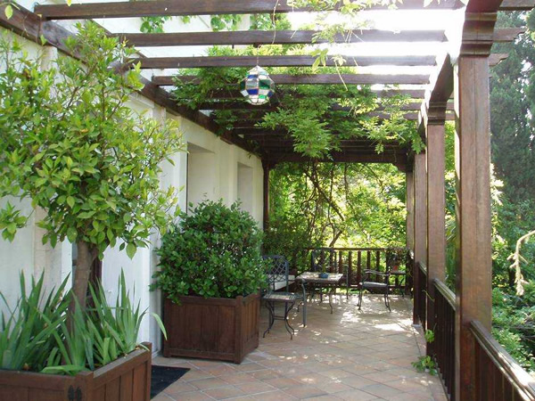 En este caso destacan los jardines, por su pérgola, alberca y sus enormes cipreses que dan nombre al Carmen.
