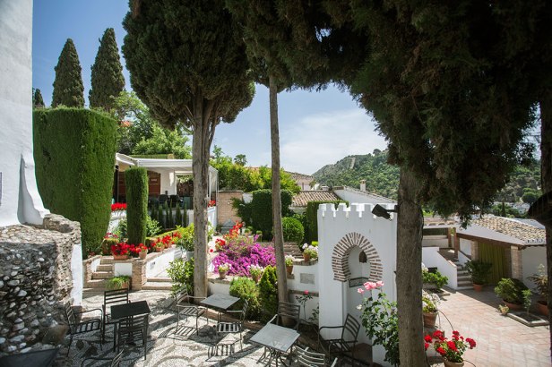 Desde sus terrazas, podemos disfrutar de una vista única, al pie como está de la Alhambra, enfrente justo del Albaicín, y dominando desde ellas el Sacromonte, y la abadía del mismo nombre.