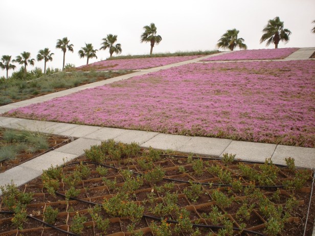 - Sevilla.-Jardines sobre cubierta en primavera.- Centro de Trabajo de Lipasam