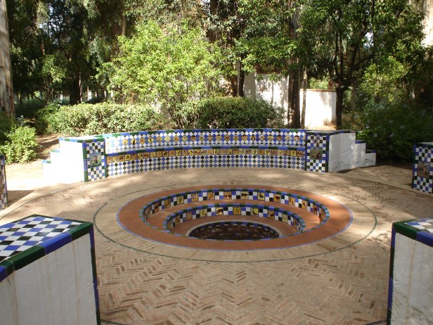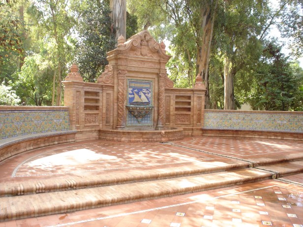 Sevilla Pàrque de Maria Luisa.-Pergolas de los Lotos.- Fuente dde ceramica en el centro del Parque