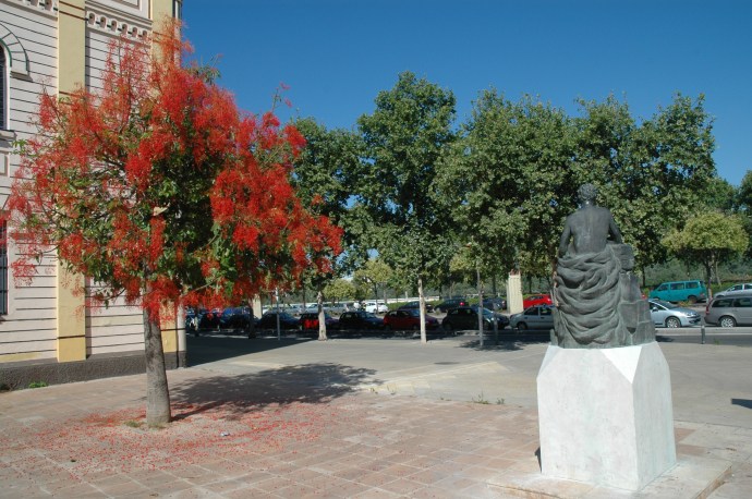 Sevilla.-Brachychiton acerifolia enc/ Torneo.-Monumento al Vendedor de Prensa