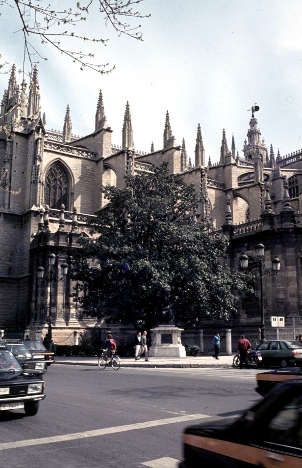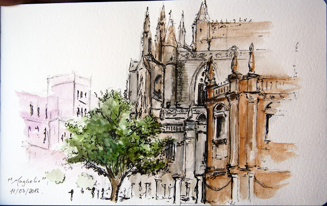 La Catedral de Sevilla tiene muchas perspectivas fácilmente reconocibles…. Pero para dibujar, las escalinatas del Archivo de Indias me llamaban esta mañana, pidiendo otra cosa…