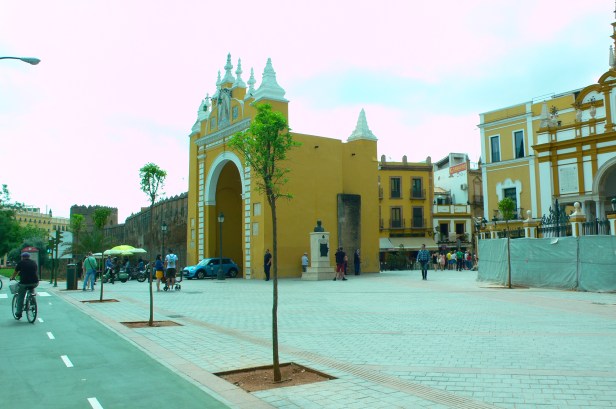 Me refiero a la reciente reurbanización del entorno del Arco y la Basílica de la Macarena como nueva plaza peatonal, una obra que ennoblece este nuevo espacio urbano peatonal.