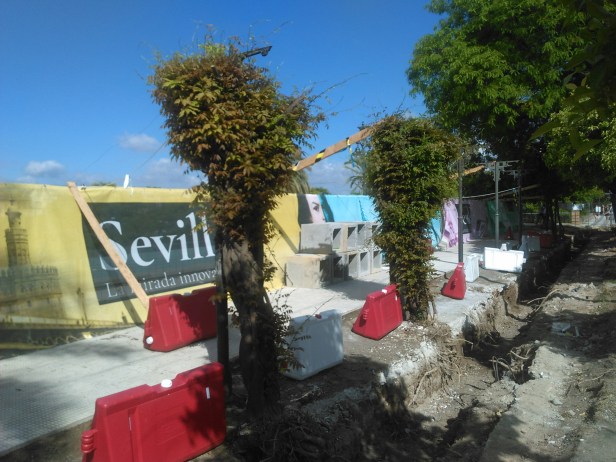 El tratamiento que están recibiendo estos seres vivos al inicio de las obras, nos hacen poner en alarma al ver el maltrato de que son objeto, las raíces cortadas sin piedad al ejecutar zanjas en la obra debe de evitarse, expuestas al aire y el sol pueden padecer un stress hasta producirles su muerte. Alguien tiene que controlar el respeto a las plantaciones (Ver fotos) y evitar que las plantaciones existentes salgan perjudicadas