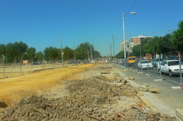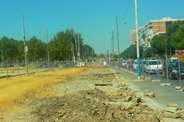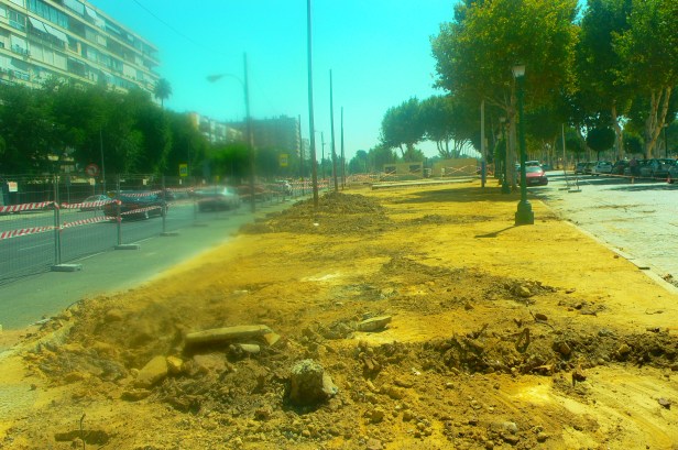 A la vuelta de unos días de descanso, me anuncian la corta de arboles en la calle Flota de Indias. -Los Remedios, acerado que se corresponde a la calle Antonio Bienvenida del Real de la Feria. La causa, la construcción de un nuevo acerado en lo que hasta ahora había sido un paseo de albero.