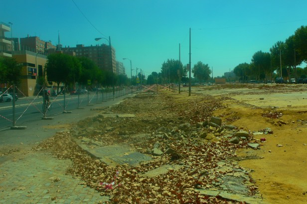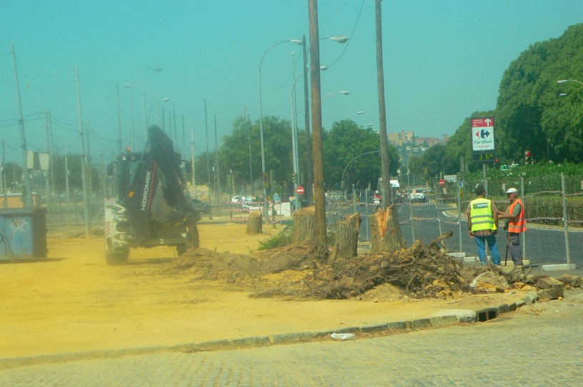 Esta vez es la Gerencia de Urbanismo la que actúa. Todos los árboles que afectan la obra han sido talados, eliminados de raíz con el tan cacareado lema de que estaban “enfermos “no sabemos a qué nivel. Lo curioso es que solo estaban “enfermos “los de este lado de la calle, los de enfrente en el acerado de las viviendas siguen estando lozanos, dando sombra, aunque aquejados de la galería del olmo, plaga defoliadora que se trata fácilmente cuando hay una verdadera gestión del arbolado viario, mantenerla debilita al vegetal.