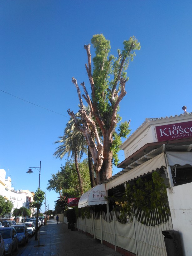 Aprovechando este desenfreno actual sobre los árboles en pocos días hemos visto desaparecer la calle Betis un Eucaliptus camaldulensis que desde el año 2015 estaban intentando eliminar, primero con un descope inapropiado que lo convertía en un árbol peligroso, el árbol se recuperó en parte en el año 2016, no consiguieron secarlo del todo, al fin, no hace más de un mes el árbol ha sido talado, Triana ha pèrdido un árbol.