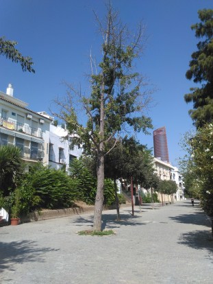 Y para terminar delante de la parte trasera del jardín del hotel,los paraisos.Melia azedarach que como todos los años y de forma tradiconal quedan en la espera de los descopes que se les realizan para ganar vistas a la dársena, ellos ganan vistas ,nosotros perdemos sumideros de CO 2.