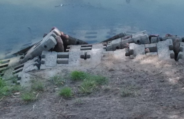 Este es el caso de los Taxodios que permanecen, plantados los arboles se defendieron las márgenes de la dársena con mallas de hormigón sobre las raíces de los árboles plantados, uno de los taxodios esta llevando a cabo una lucha titánica para romper la malla y poder asomar sus neumatóforos , estructuras modificadas a partir de la raíz propias de esta especie. En realidad, son raíces con geotropismo negativo, es decir, que crecen en dirección opuesta al suelo y que le sirve al árbol para fijar la planta al suelo y absorber las sustancias nutritivas e incluye el intercambio de oxígeno y dióxido de carbono en la respiración y en la fotosíntesis.