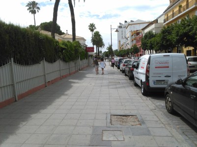 De aquí a la calle Betis a la que en tantas ocasiones hemos reclamado la plantación de arboles en los numerosos alcorques vacíos de la calle, estaban abriendo hoyos en los reducidos alcorques 65 x 65 cms a los que les restas 20 cms del hormigón que ampara el bordillo del alcorque queda reducido a 45 x 45 cms.la disponibilidad de tierra para el nuevo árbol que durante años se quiere implantar en la calle sin éxito.