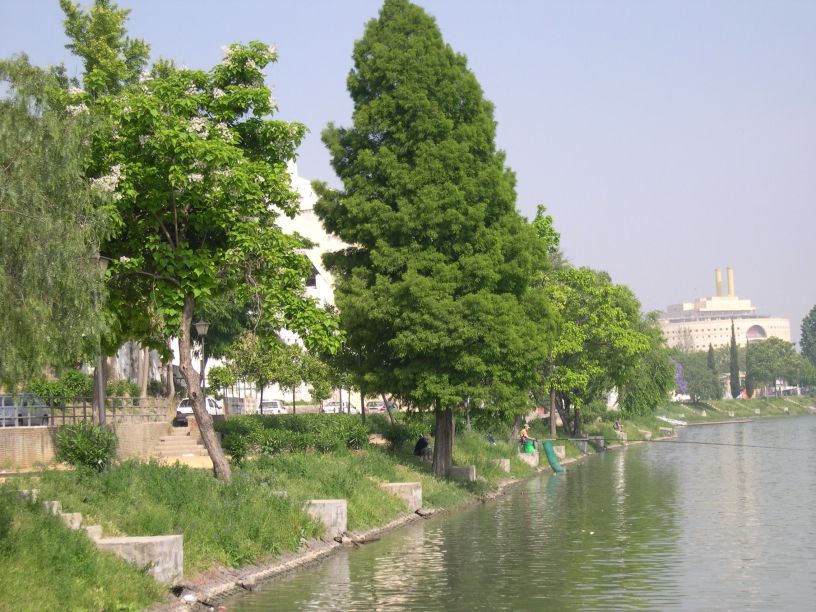 Hace ya algunos años, en el 1964-65 se llevaron a cabo las primeras obras de adecentamiento de las márgenes de la dársena de plantaron chopos, catalpa ,olmos y liquidámbar y taxodios, algunos, la mayoría de los chopos han desaparecido, son arboles poco longevos por las distintas plagas y enfermedades que padecen, un liquidámbar seco todavía aparece en la margen y un debilitado Ginkgo, árbol de los escudos que al pavimentar el paseo en una de las ultimas reformas llevadas a cabo, cerraron sus expectativas de vida al reducir su alcorque a lo mínimo por lo que las raíces no tienen el suficiente oxígeno para subsistir.