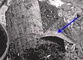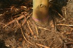 1) encuentre el punto donde emerge la raíz superior desde el tronco (excavar hacia abajo al lado del tronco para encontrar este punto), y
