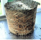 Los cepellones de raíz (también llamados haz de raíces ) de los contenedores tienen raíces grandes o muchas en el borde exterior de la bola. También pueden tener muchas raíces que cruzan la parte superior de la bola de raíz. Es mejor no plantar árboles en esta condición porque las raíces podrían rodear el tronco a medida que el árbol crece. El árbol también podría volverse inestable más adelante debido a que pocas raíces de apoyo crecen desde la parte curva externa de una raíz .