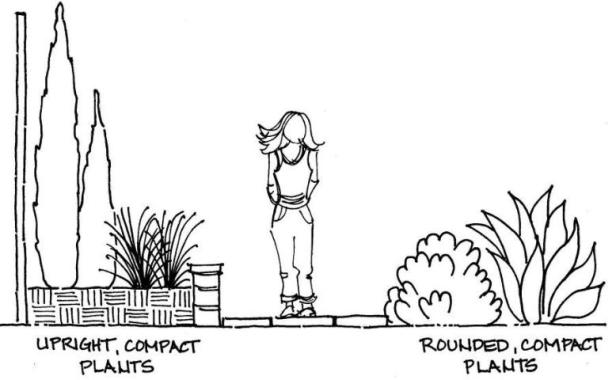 A continuación hay varias estrategias para usar el tamaño efectivamente en el paisaje:Elija el tamaño que mejor se adapte a la ubicación (Figura 17).