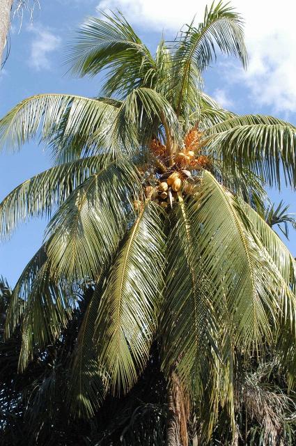 No hay evidencia de que la eliminación de los tallos de flores o frutos vivos (Figuras 17 y 18) cause daño a las palmas. De hecho, los estudios han demostrado que la eliminación de los tallos de las flores incrementa las tasas de producción de hojas, ya que los carbohidratos que se habrían desviado hacia la producción de flores y frutas ahora están disponibles para la producción de hojas. La eliminación de los tallos de las flores también evita la producción y la caída de frutos sucios que eventualmente pueden brotar en plántulas no deseadas. En las áreas públicas, la caída de la fruta de la palma de coco es una preocupación importante, y es mucho más fácil eliminar los pequeños tallos de flores que los grupos pesados de frutas (Figura 19).
