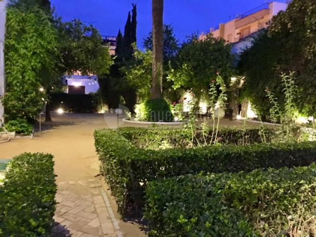 El patio como única decoración vegetal unos importantes macetones de cerámica con Nephrolepis exaltata.-Helechos que ennoblecen el conjunto.Otros patios de menor interés completan el conjunto.