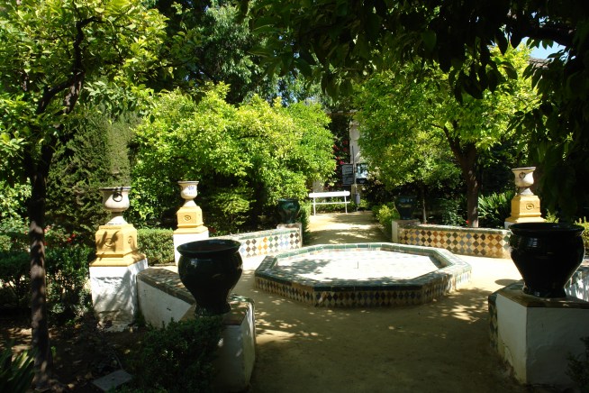 Cuando la mano experta del hombre contribuye con policromos azulejos. A menudo muchos de los que usan flores hacen el jardín español distinto a los otros de Europa. Ellos son el legado que los árabes y los moros han dejado en la Península Ibérica.