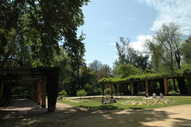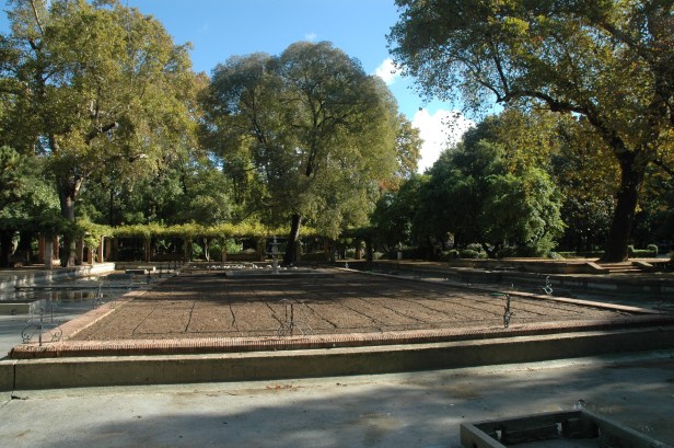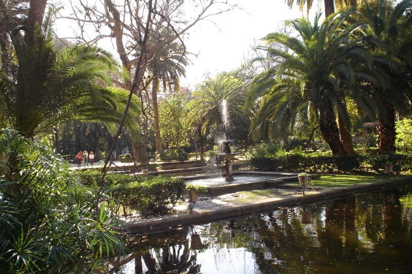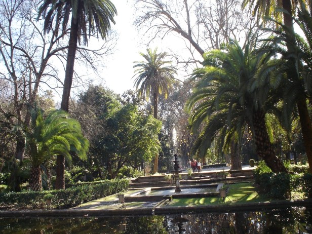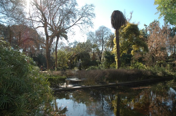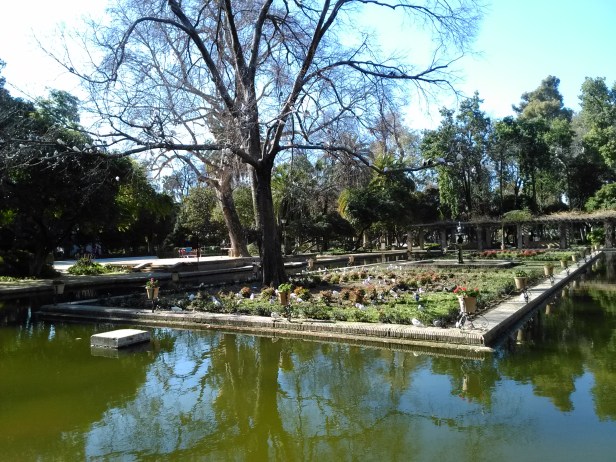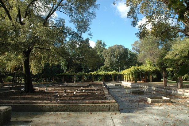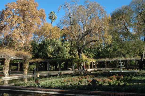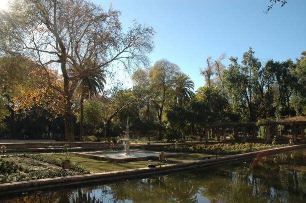 Forestier crea un eje longitudinal Norte-Sur bordeado por dos grandes avenidas, situando en cada uno de los extremos de eje dos conjuntos artísticos de clara inspiración islámica, el estanque de los Lotos, replica del Patio del Ciprés de la Sultana en el Generalife de Granada, rectangular, tipo acequia, rodeado de una atractiva pérgola con bancos de ladrillo talladlo, y la Fuente de los Leones reflejo de su homónima de la Alhambra, octogonal , de ritmo zigzagueante en surtidor, respaldada por una rosaleda.