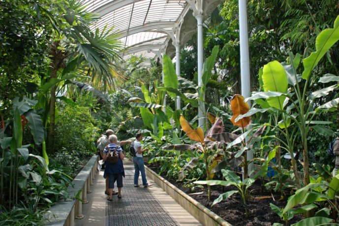 The Palm House o Casa de las Palmeras fue construida por el arquitecto Decimus Burton y el fabricante de hierro Richard Turner entre 1844 y 1848, y fue el primer uso estructural a gran escala de hierro forjado. Los paneles de vidrio de la estructura están soplados a mano.